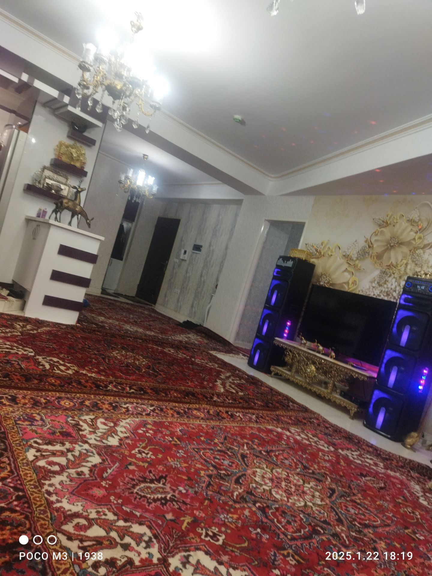 فول نصبیات لوکس عالی با کابینت های ام دی اف با پرده ای سلطنتی فول کمد دیواری در اتاق ها دستشویی ایرانی فرنگی با کاغذ دیواری